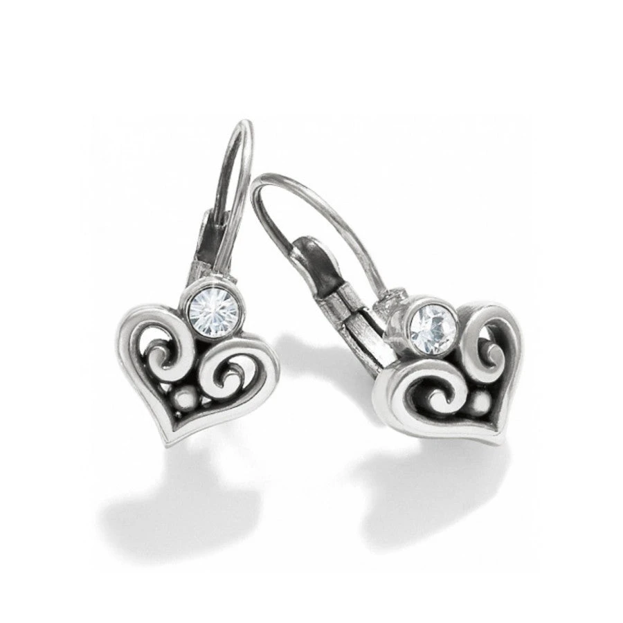 Featuring fine quality crystals atop swirly filigree hearts, these sweet silver-plated earrings are perfectly Brighton in every way.