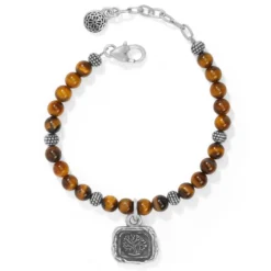 Each bead is unique and one-of-a-kind on this Tiger’s Eye bracelet centered with an oak tree charm symbolizing strength and wisdom.
