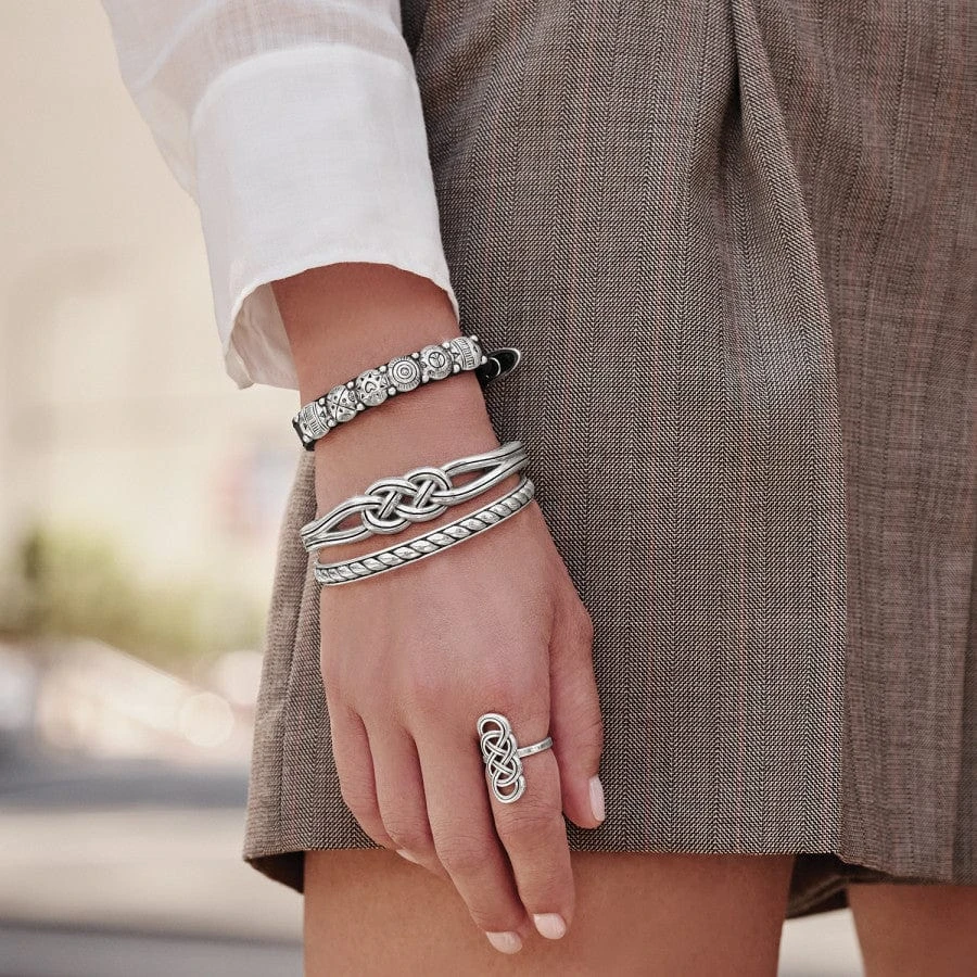 Our best-selling Interlok Hinged Bangle is a stunning addition to any look. This Celtic-inspired bangle encircles the wrist in a comfortable oval, with a strong magnetic closure. Easy to put on and take off, and its sleek style is everyday wearable.