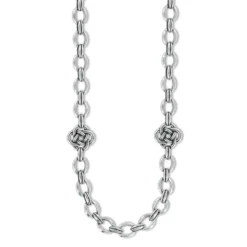 A small knot is linked on each side of a casted oval link, creating a collar style necklace with a classic-yet-modern aesthetic. It mixes and layers easily with any Interlok jewelry.