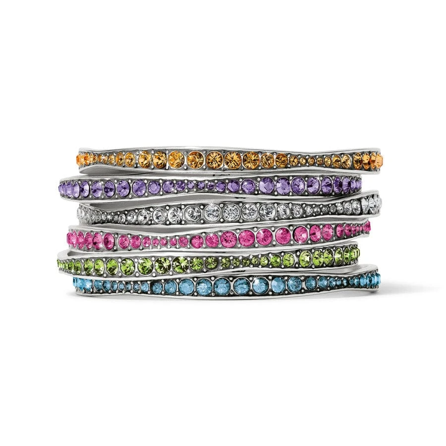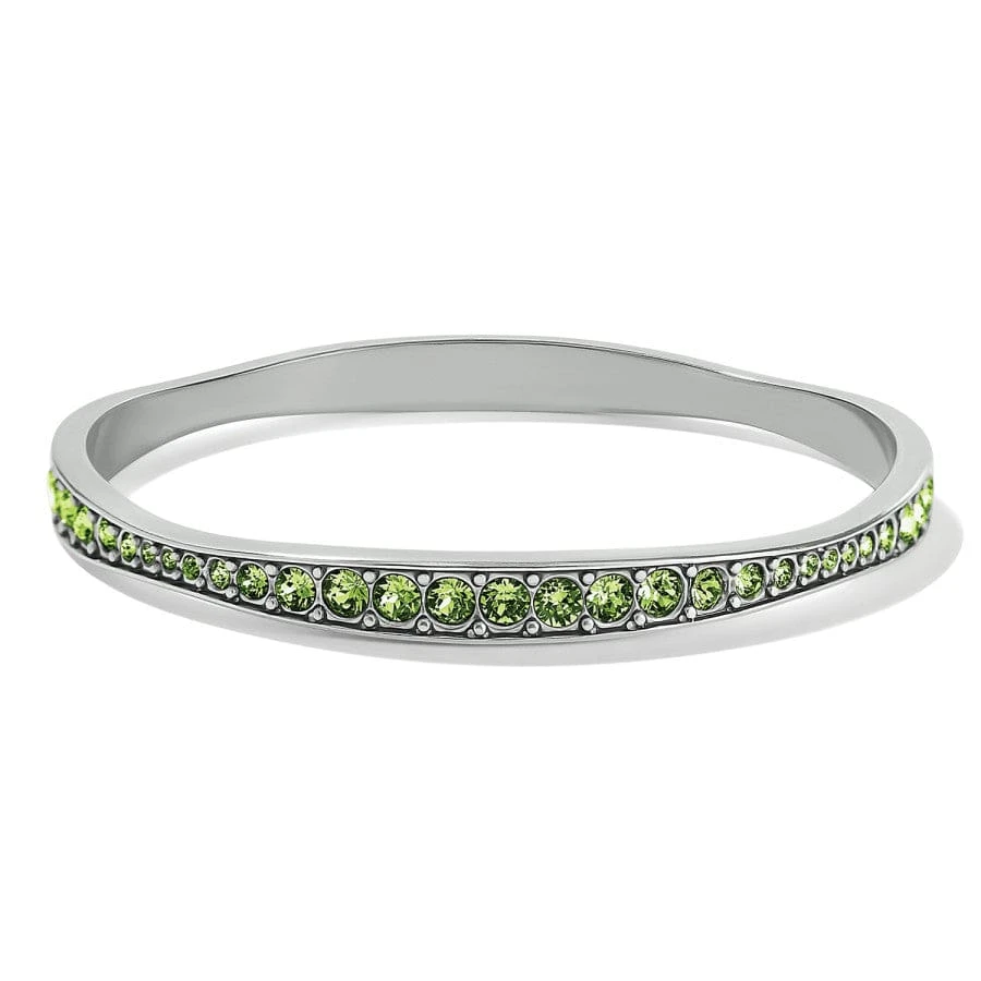Tiny rhinestones add sparkle to a scalloped bangle reminiscent of Balinese jewelry artisans’ creations.