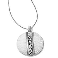 Dividing this slender hammered disc is a stripe of our Mingle motif, with swirls dancing down its center. This is a great everyday necklace — simple, chic and timeless.
