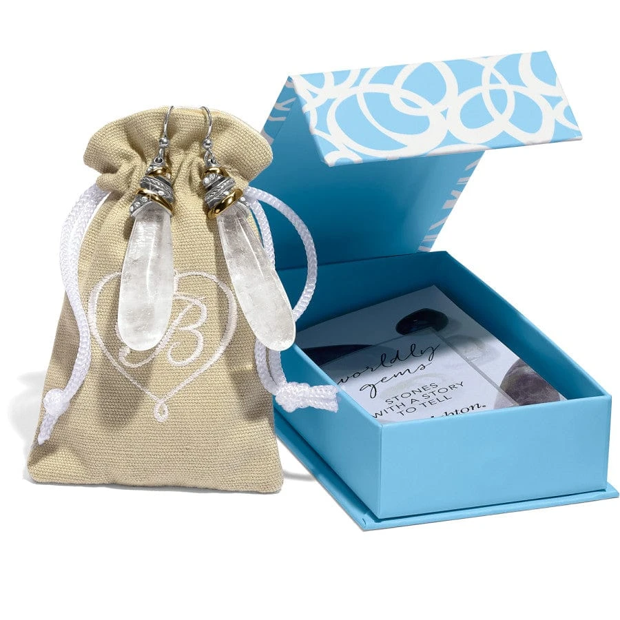 Topped by a tumble of mixed metal and fine quality crystal-bejeweled rings, these semi-precious crystal drop earrings symbolize healing and stress relief. Every crystal is carefully selected by hand for a matching set, yet each one, with natural inclusions, is truly one of a kind.