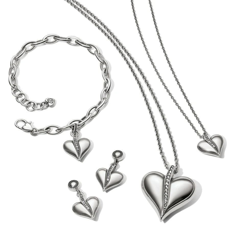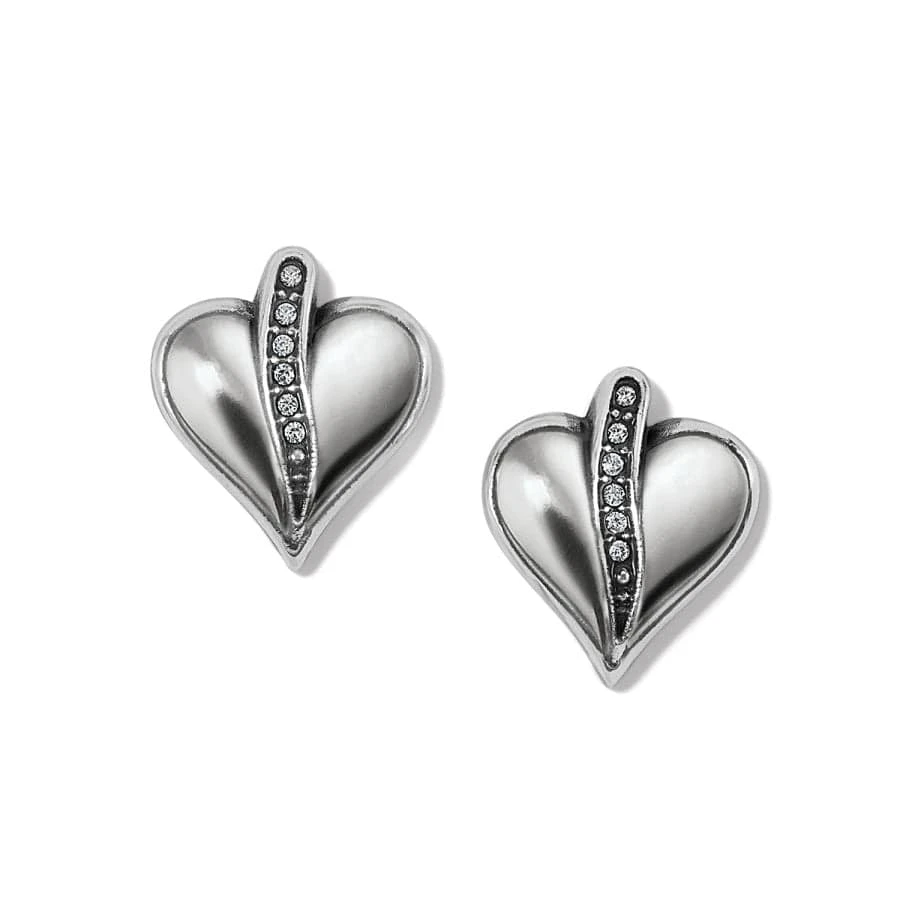 Reminiscent of handmade, sculpted fine sterling silver jewelry, these earrings have pillow-shaped petite hearts with a river of fine crystals – making them perfect.