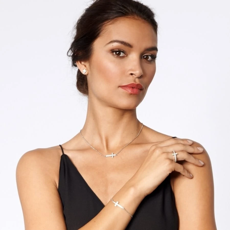 Inspired by the trail of a shooting star, the Starry Night Cross Bracelet evokes wonderment. With a distinctly modern look, the cross rests on its side between two chains. Let its brilliance delight you!