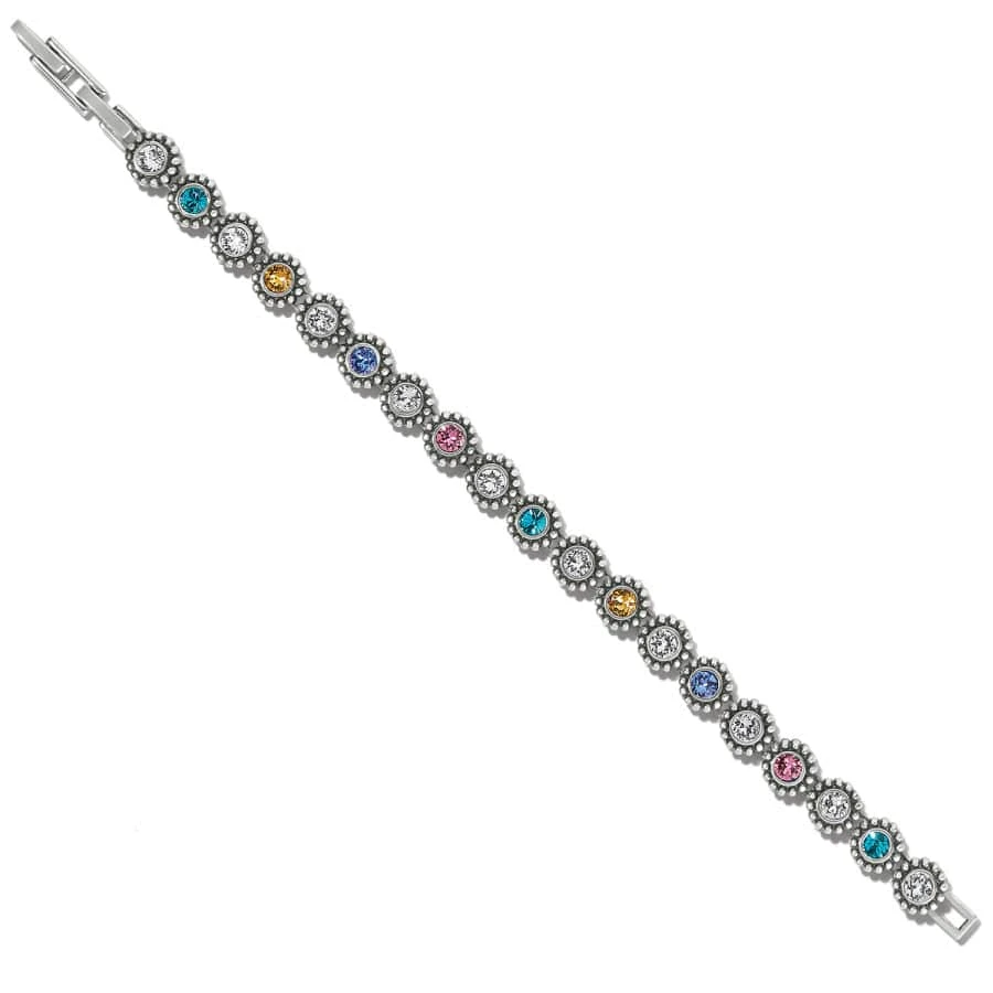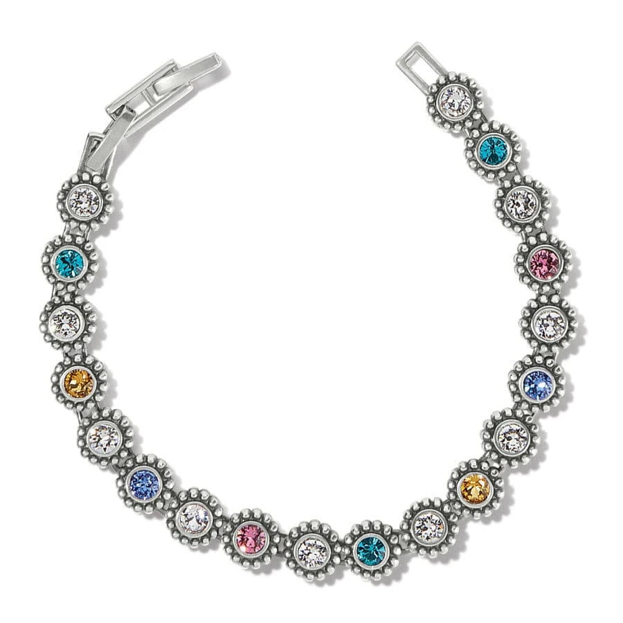 Balinese silver granulation frames shimmering hand-set colorful crystals for a look that complements jeans and white shirts to little black dresses.